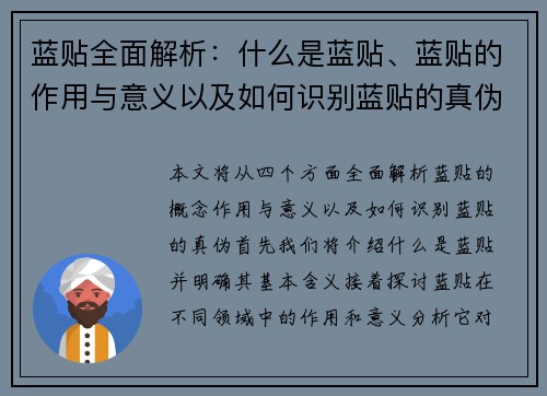 蓝贴全面解析:什么是蓝贴、蓝贴的作用与意义以及如何识别蓝贴的真伪